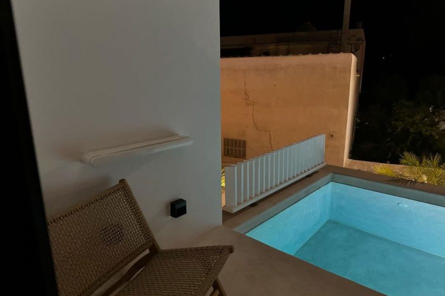 Experience luxury and comfort in our newly built modern accommodation. This exclusive room, located on the ground floor, features contemporary design elements and is equipped with all the amenities you need for a relaxing stay. Enjoy a private pool just steps away from your bed, perfect for unwinding after a busy day of exploring. The room includes a comfortable double bed, a sleek shower for a refreshing experience, and a separate toilet for your convenience.