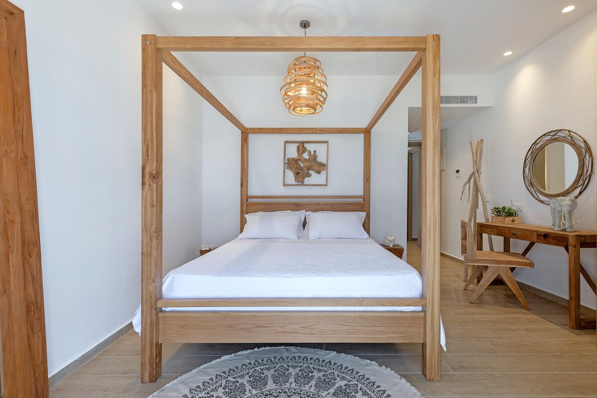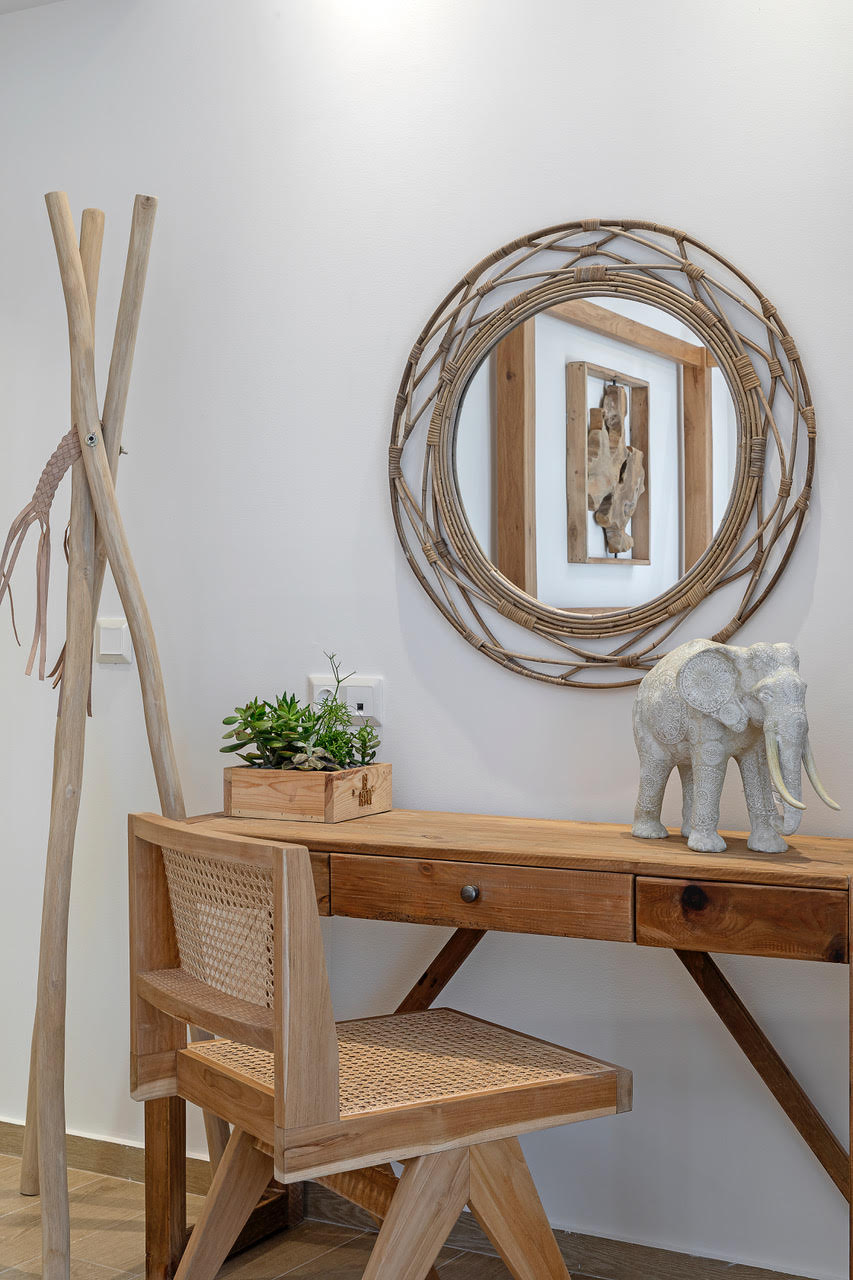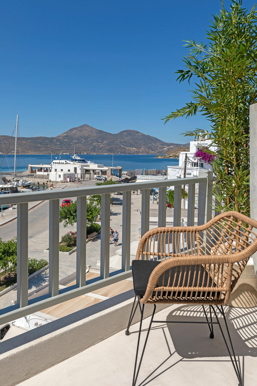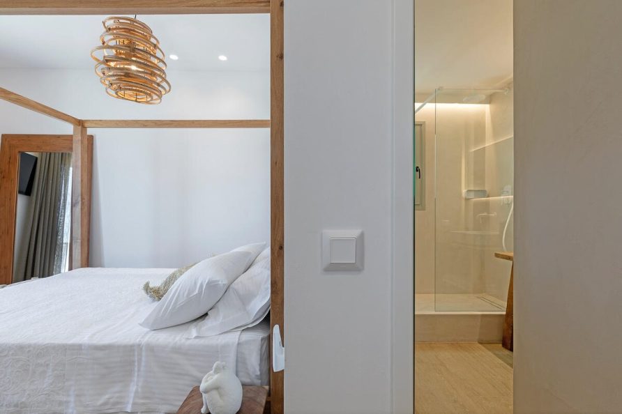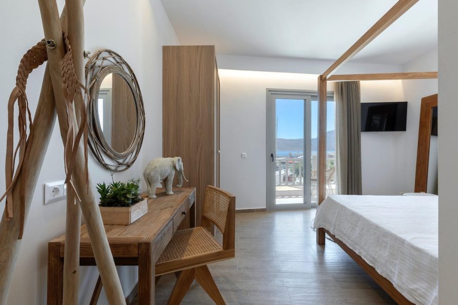 Boho Sapiens “Blue Perlite Aura” combines the sense of luxury through bohemian decor. This brand new sea view apartment offers relaxation moments in a privileged spot in the heart of Adamantas Port.