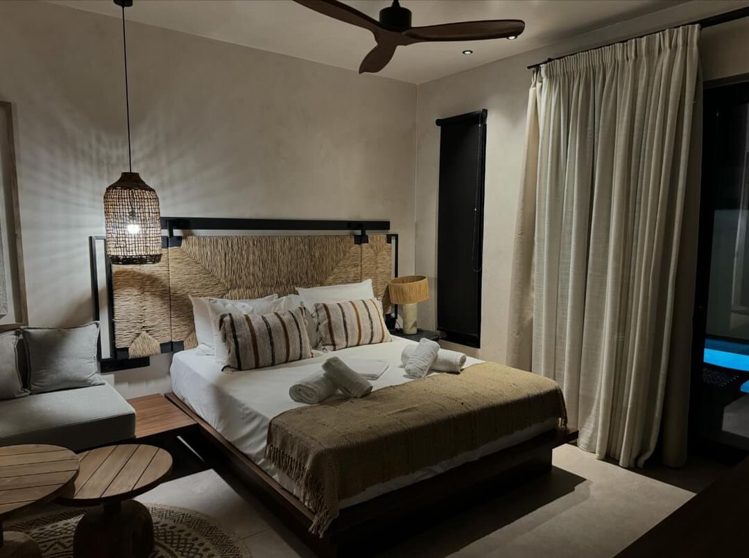 Experience luxury and comfort in our newly built modern accommodation. This exclusive room, located on the ground floor, features contemporary design elements and is equipped with all the amenities you need for a relaxing stay. Enjoy a private pool just steps away from your bed, perfect for unwinding after a busy day of exploring. The room includes a comfortable double bed, a sleek shower for a refreshing experience, and a separate toilet for your convenience.