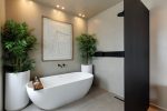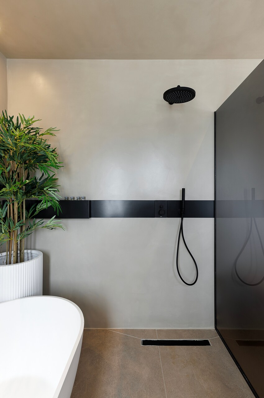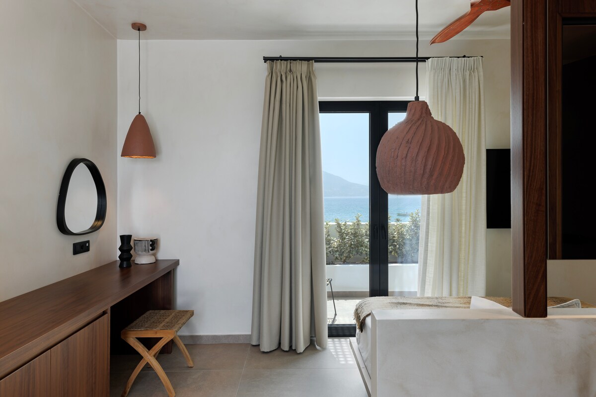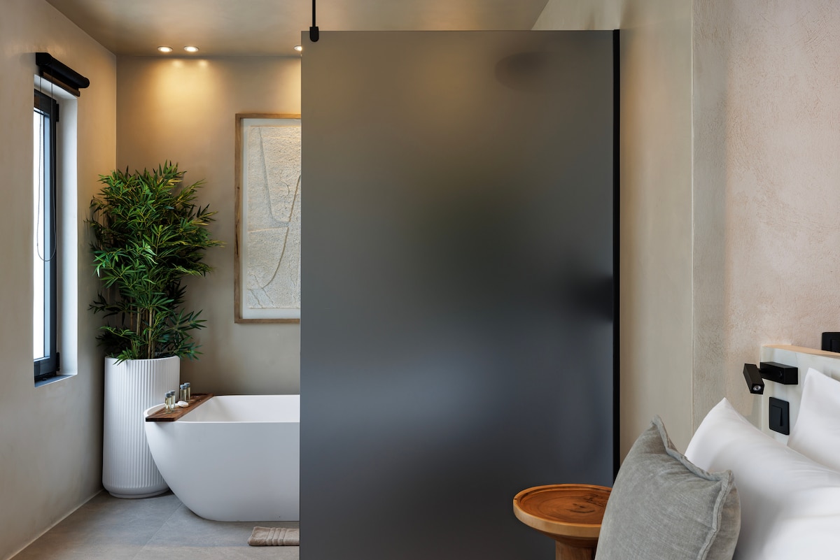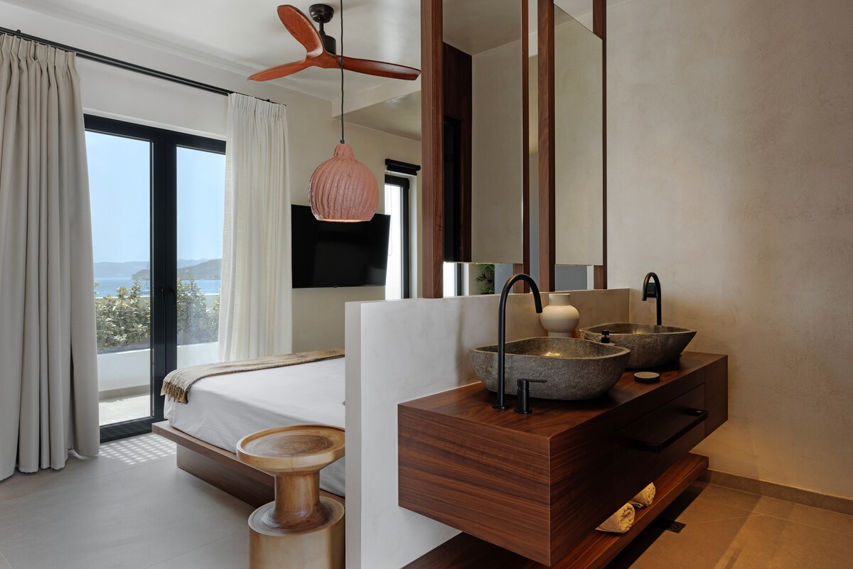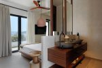 Embrace luxury and breathtaking views in our modern upper floor room, nestled in a newly constructed building for the ultimate escape. Wake up to stunning sea views from your comfortable double bed, setting the tone for a day of serenity and relaxation. Unwind in a space that features both a lavish bathtub and a rejuvenating shower, offering a spa-like experience within the confines of your room. The room also includes a convenient toilet and a chic shower for your comfort.