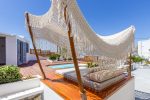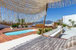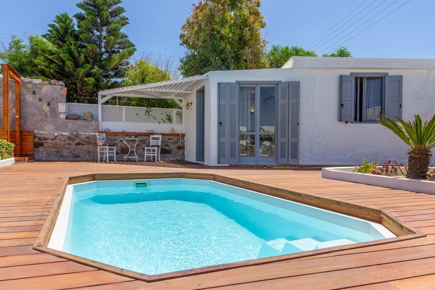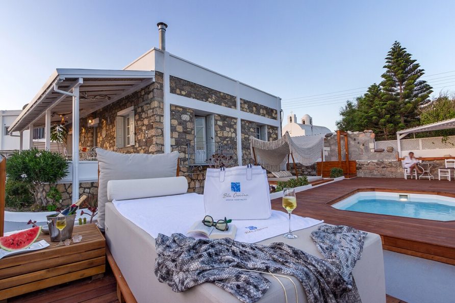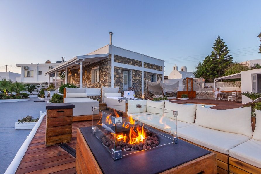 Guests can relax by the pool or in their beautiful private garden, enjoy dinner in their private outdoor dining area, spend their breakfasts or choose from the sun loungers on the deck. As well as to experience the enchanting sunset in the same space with the company of the outdoor fireplace relaxing on the comfortable sofas.