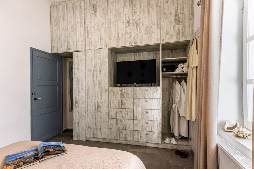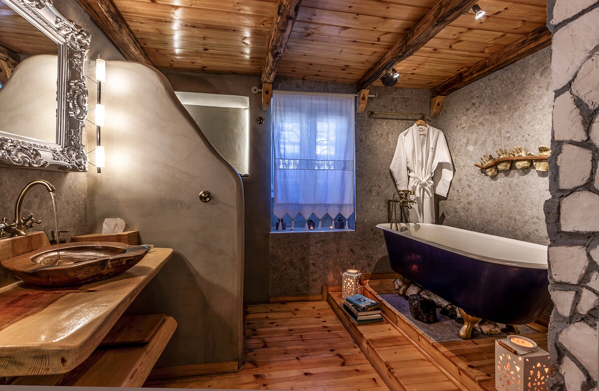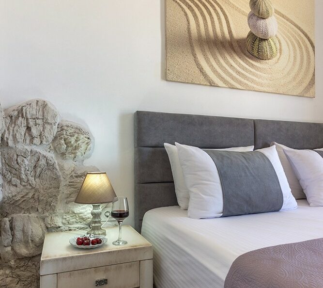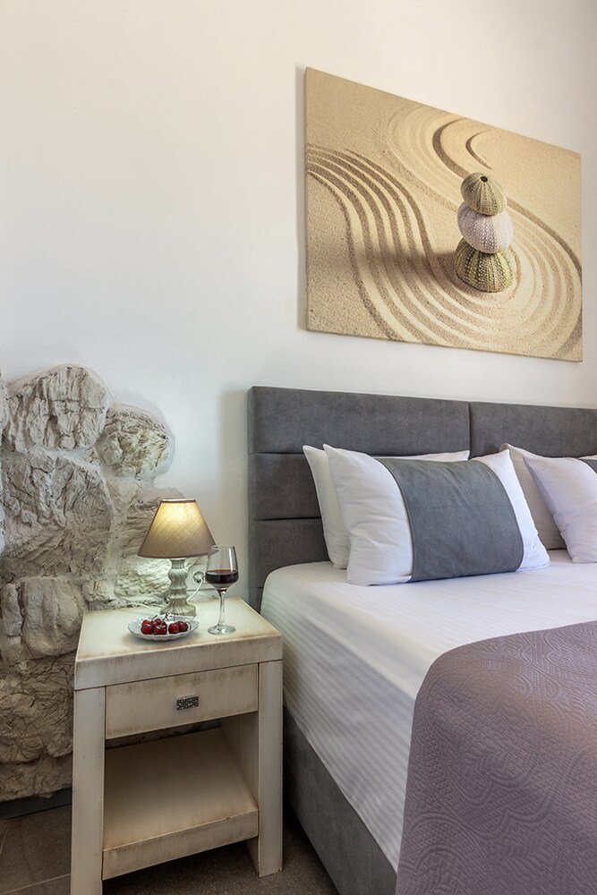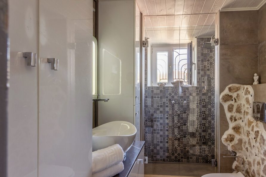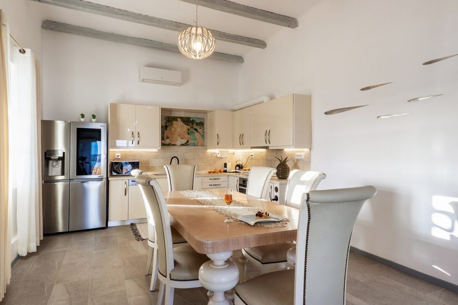 BLE ONEIRO Villa CRYSTAL consists of two bedrooms – with a large double bed, a fully equipped kitchen and two bathrooms. In addition to the shower, the master bathroom also offers a bathtub.