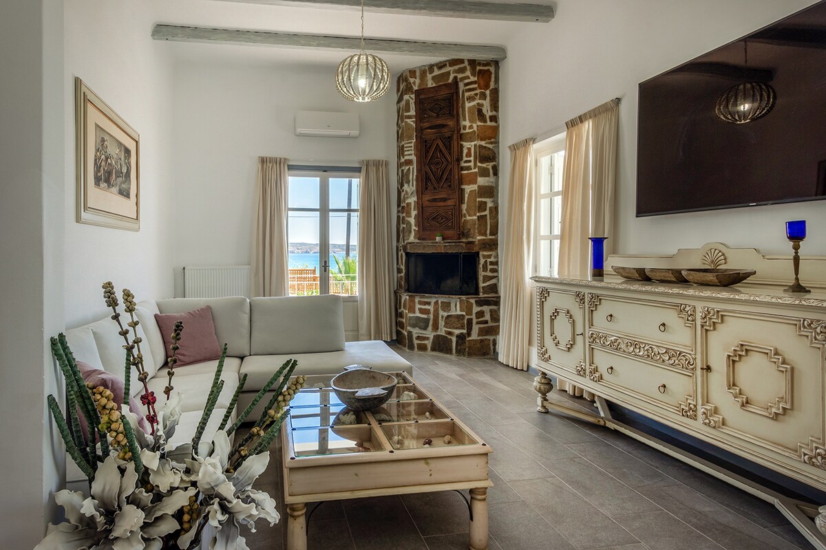 The villa has a sea view as well as an outdoor area with an outdoor dining area and views of Adamas.