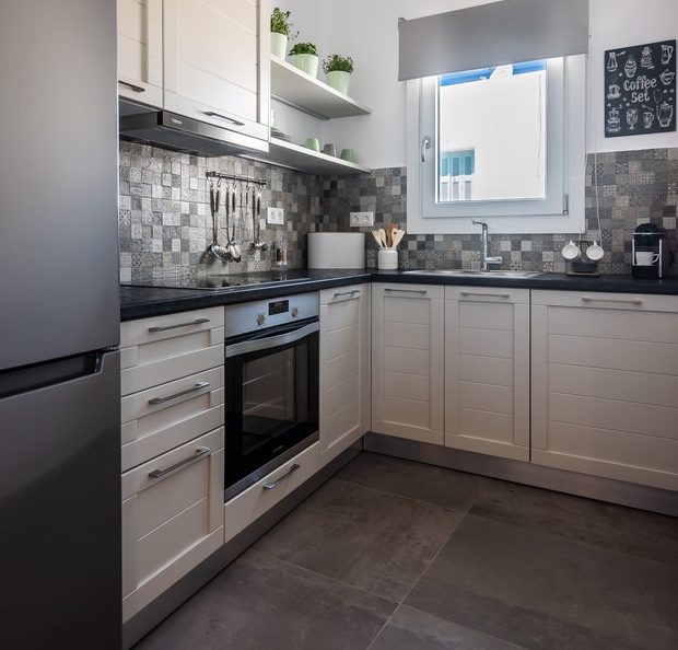 The apartment, on the upper floor, offers two double bedrooms with king size bed each, one modern bathroom with douche and a big living room with a fully equipped kitchen. From the verandas you can enjoy an amazing sea view!