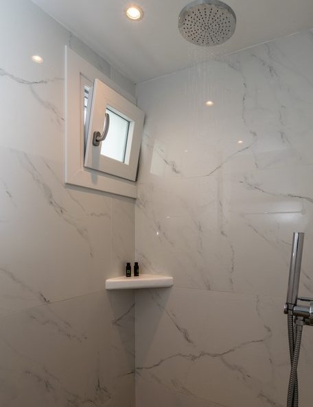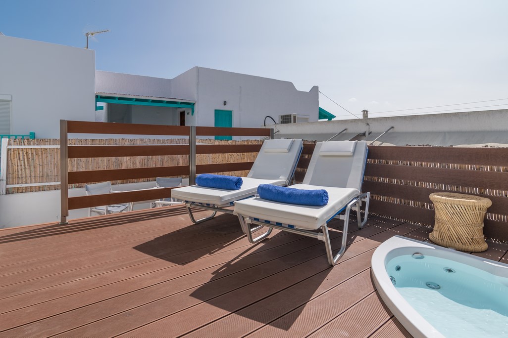 The moon suite, is a modern open space unit with living roo and an outdoor hot tub.