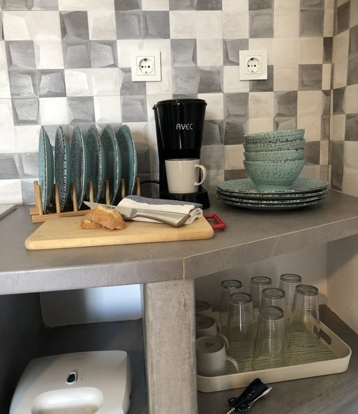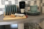 Salty Kisses is studio on the upper floor. It offers a mini kitchen and coffee maker. There is no air condition or TV set.