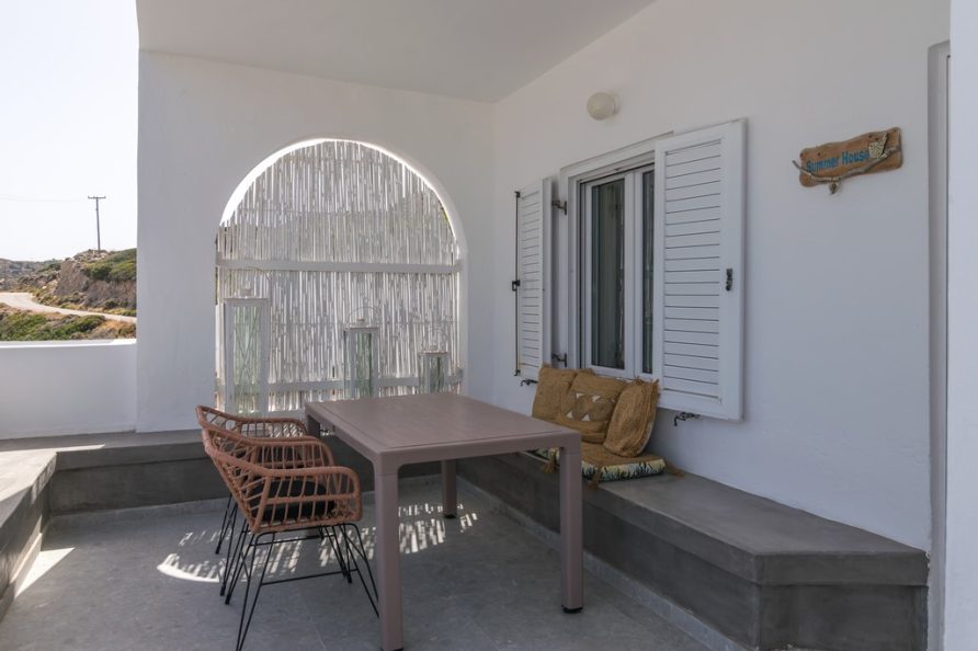 Summer Residence is a complex of rooms and apartments built in a beautiful locale, just right for rest and relaxation. The place is Agios Sostis in Provatas bay, on the south coast of Milos, where the water is calm. Many small beaches are a walking distance away. About the grand beach, one could prefer to use a car to get to it. Beaches in Provatas are known for their ‘golden’ sand!