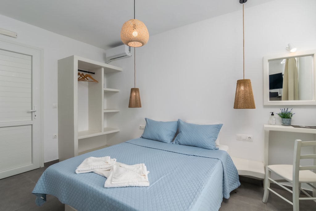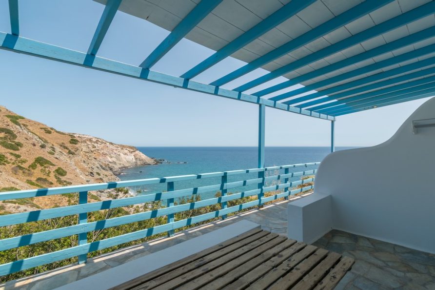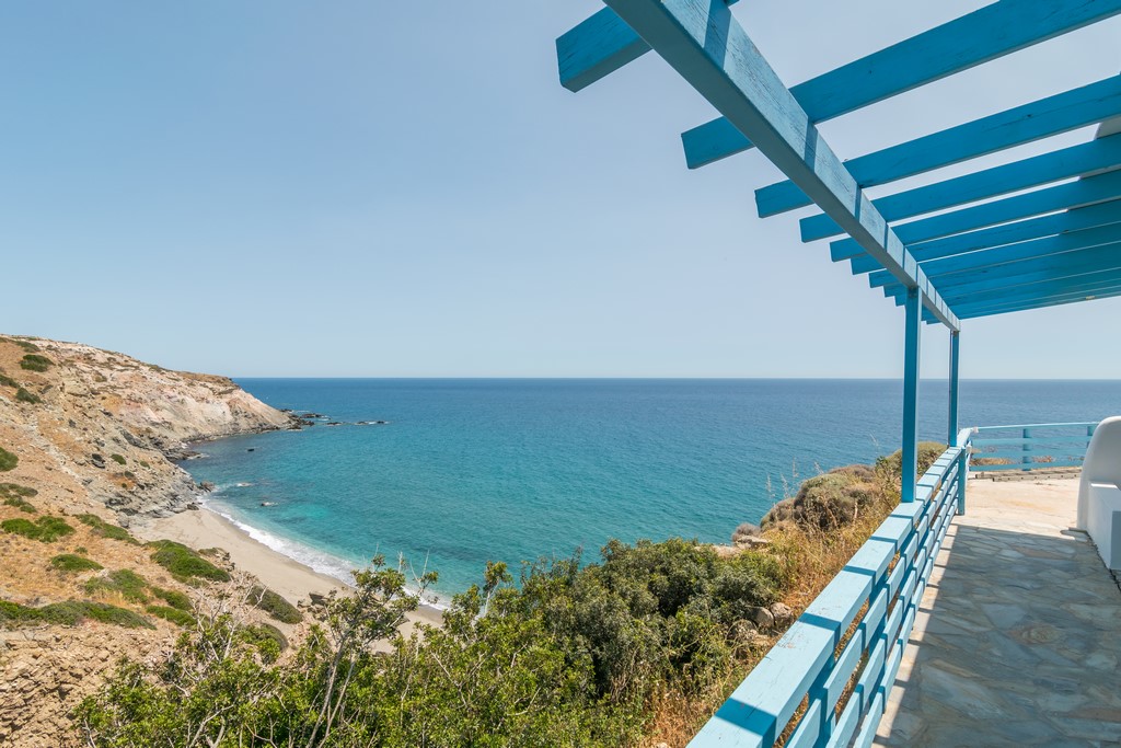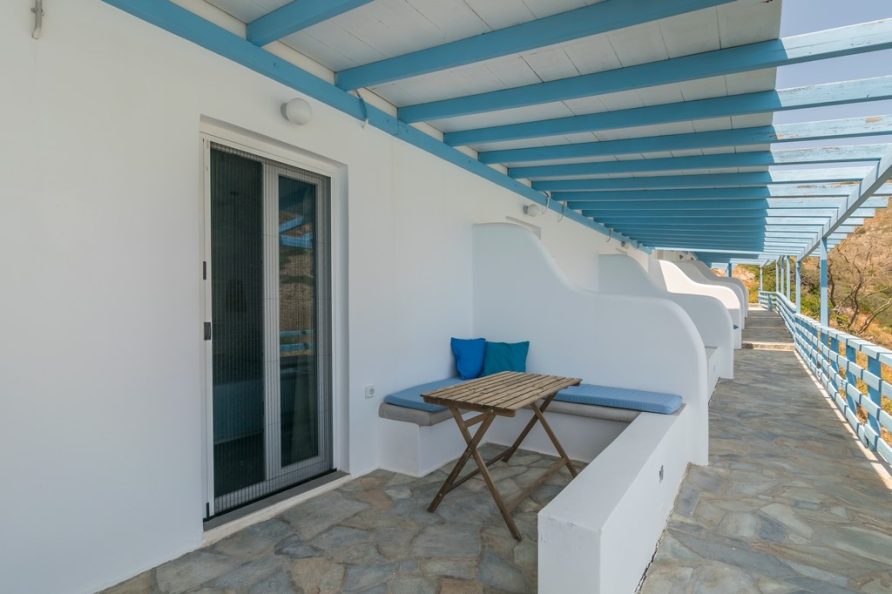 All rooms have a private balcony overlooking Psarovolada Beach. Access to this beach is via a small and steep path.