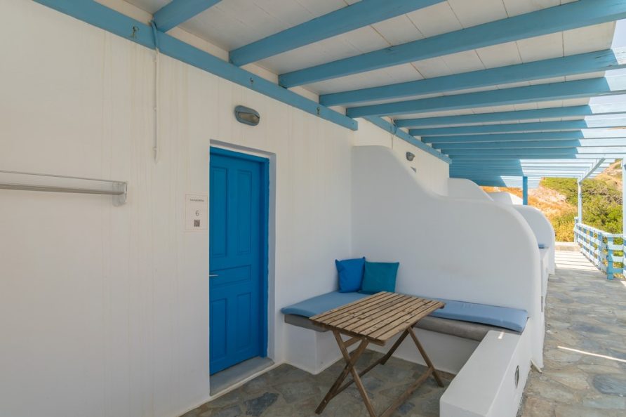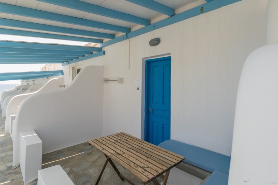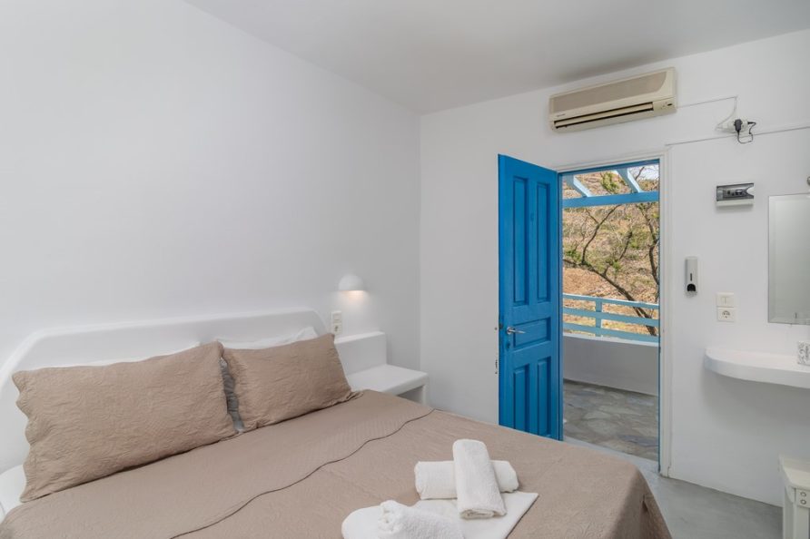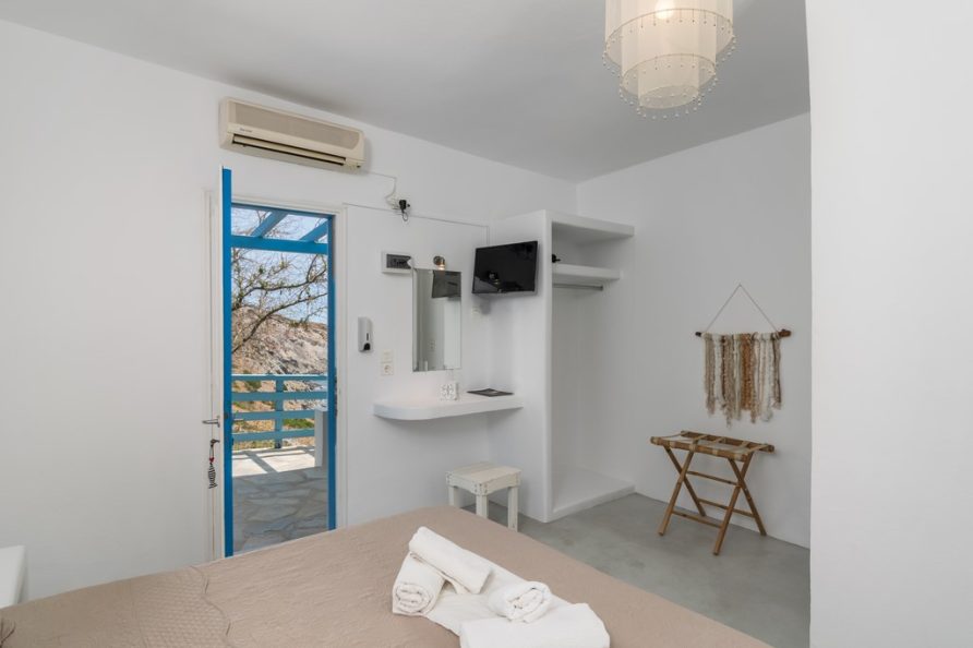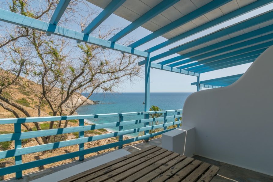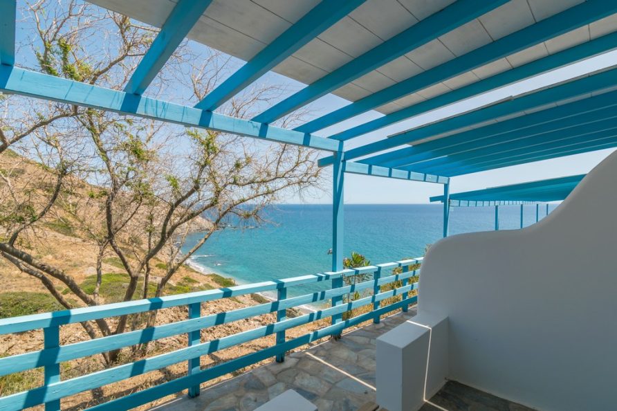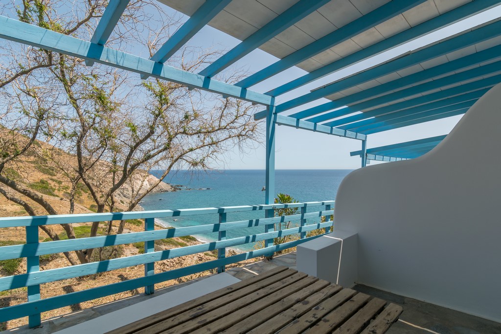 All rooms have a private balcony overlooking Psarovolada Beach. Access to this beach is via a small and steep path.