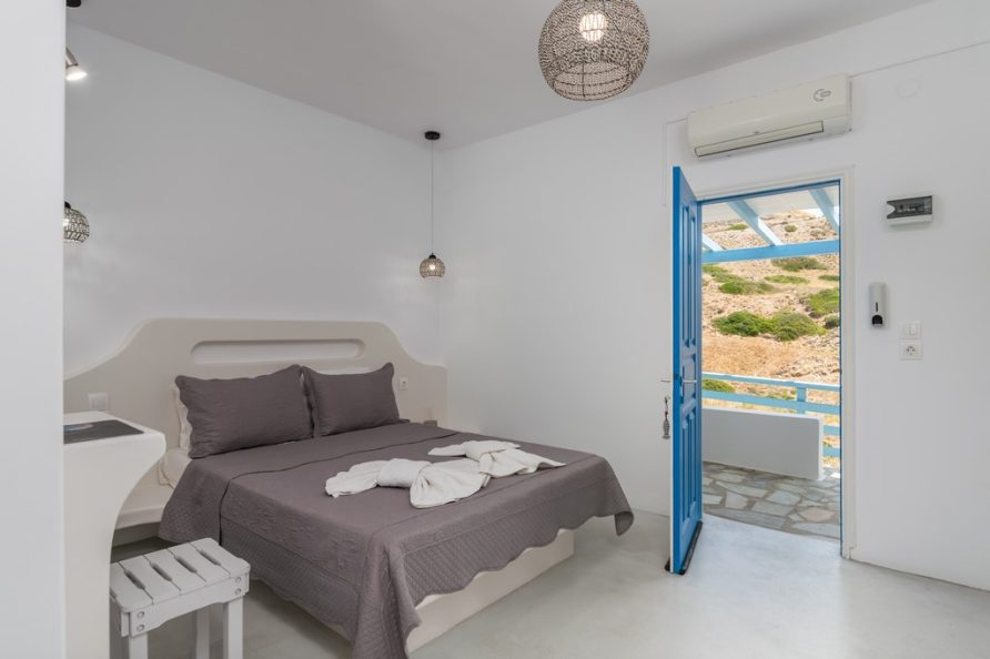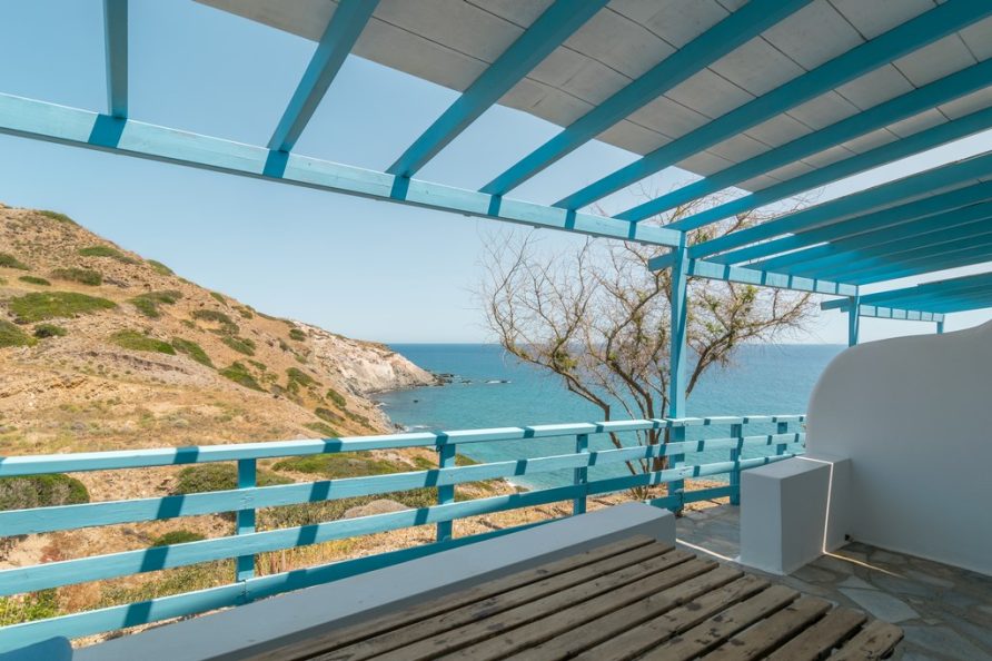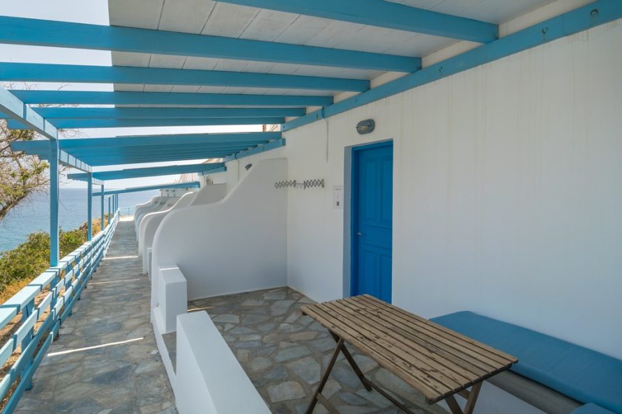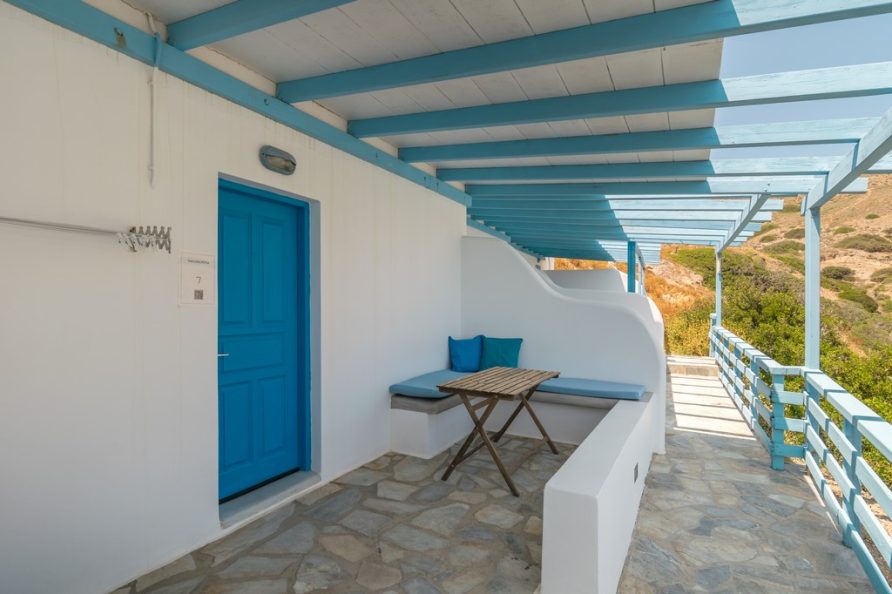 All rooms have a private balcony overlooking Psarovolada Beach. Access to this beach is via a small and steep path.
