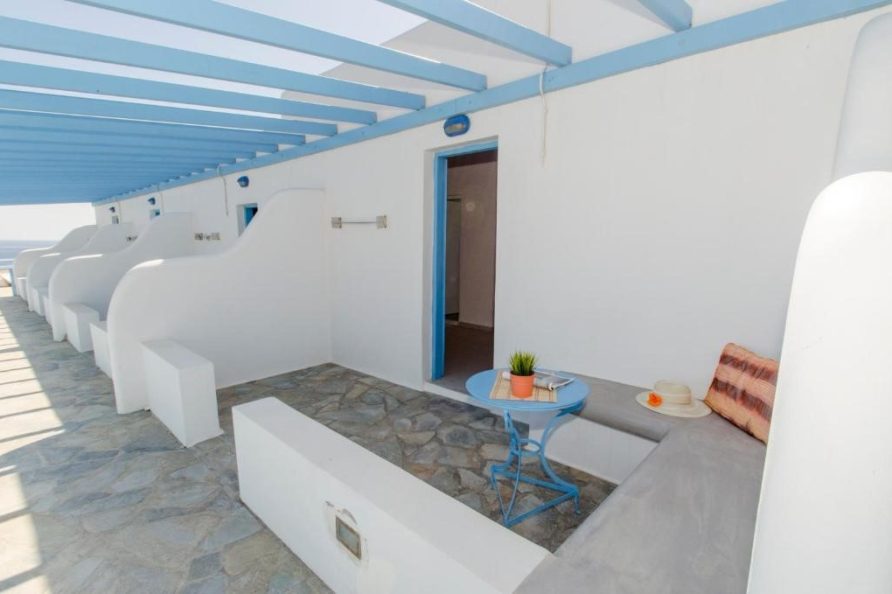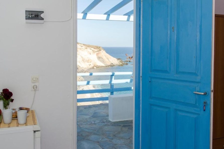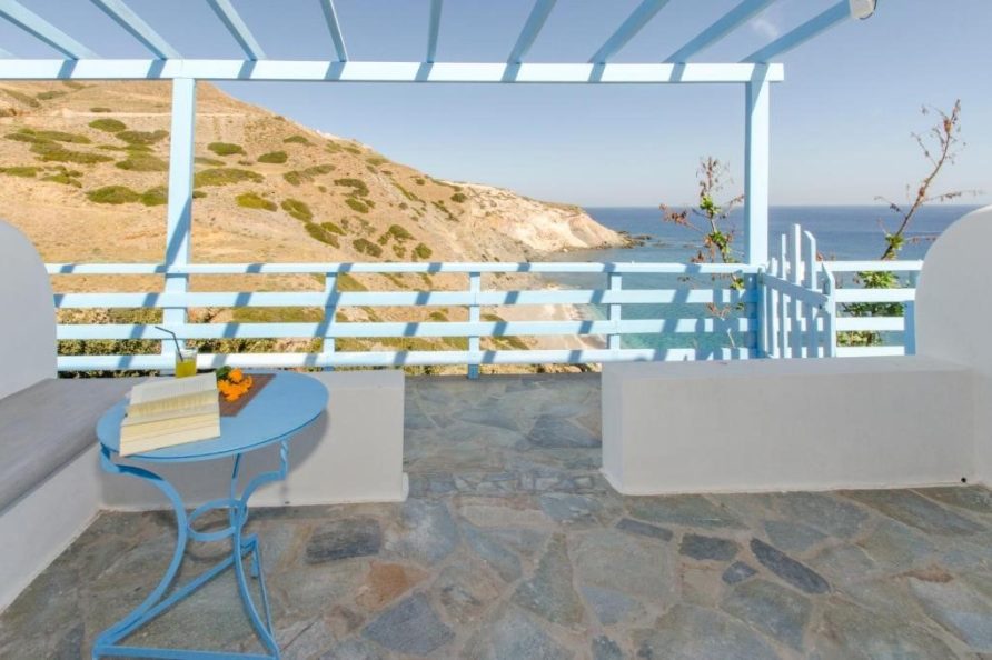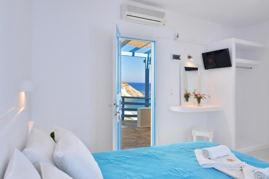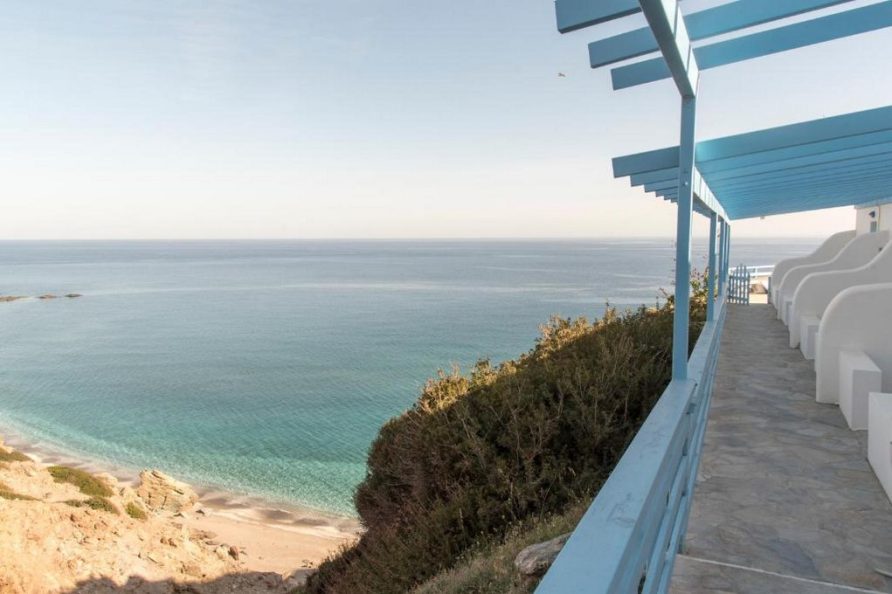 All rooms have a private balcony overlooking Psarovolada Beach. Access to this beach is via a small and steep path.