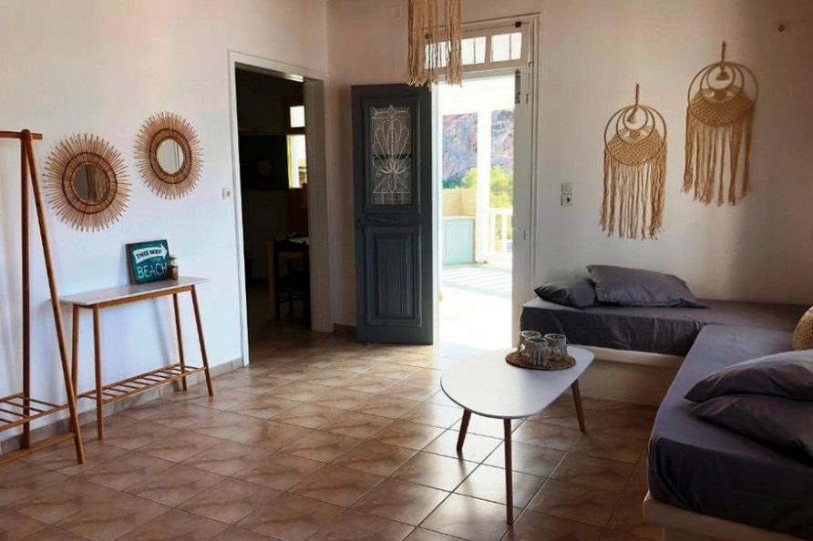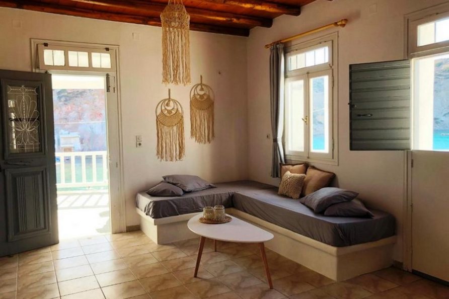 One large veranda surrounds the house and offers a 360° view of Firopotamos bay, only steps away from two beaches.