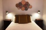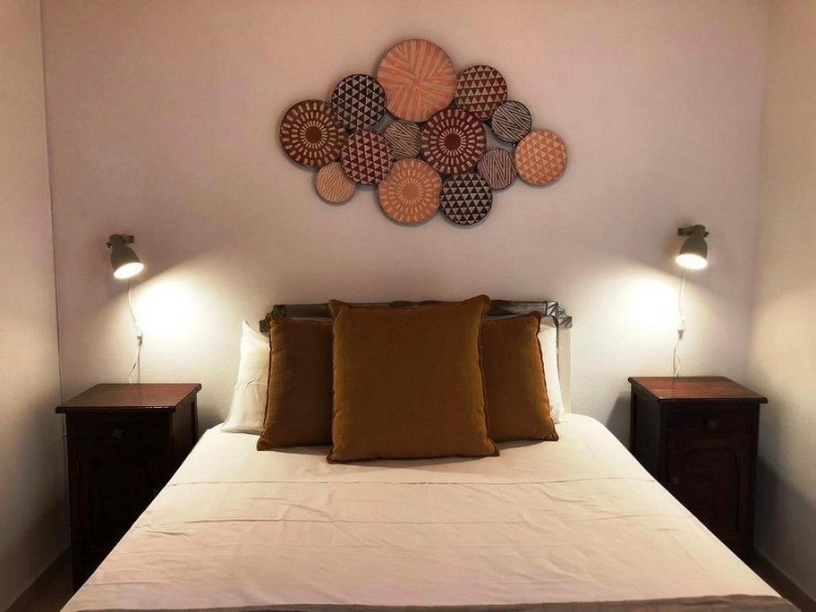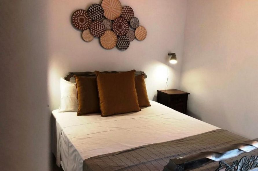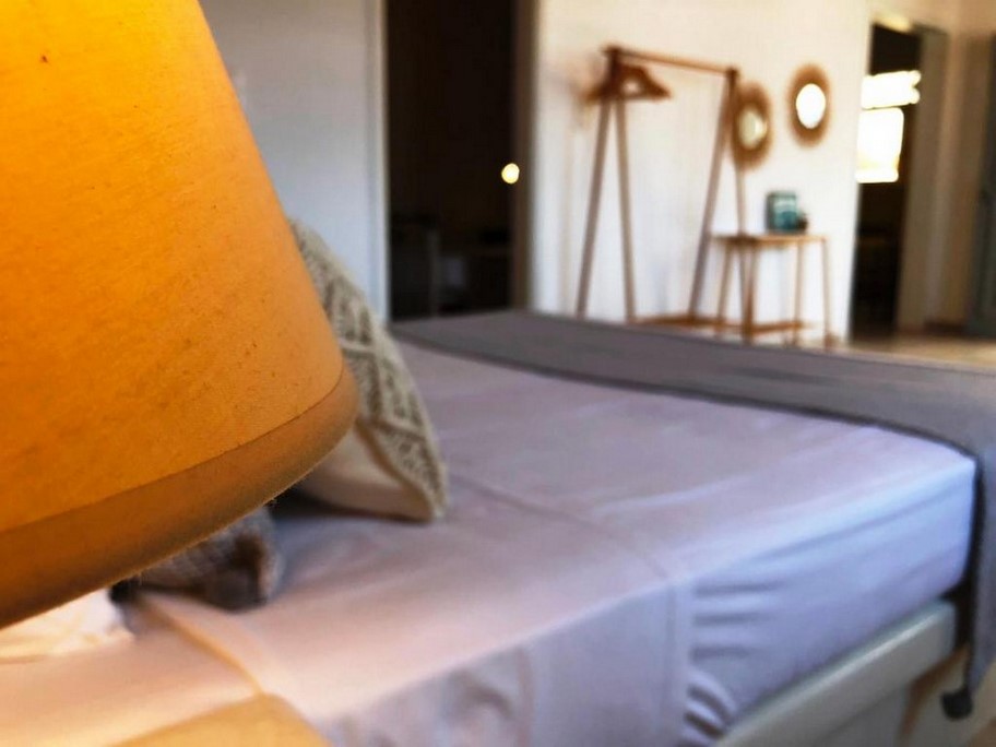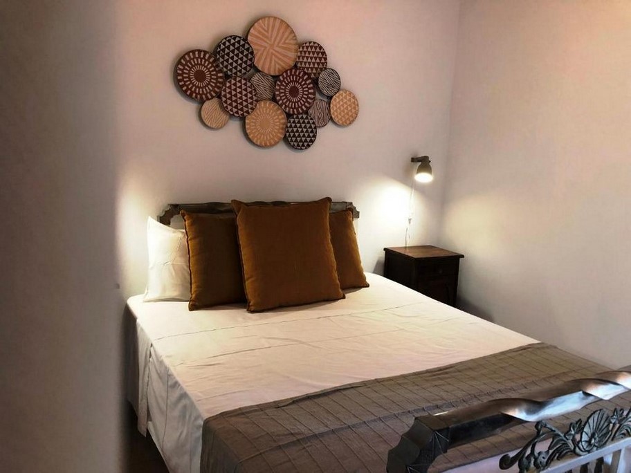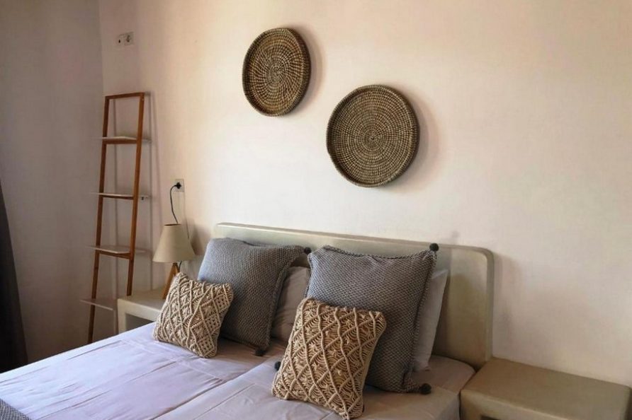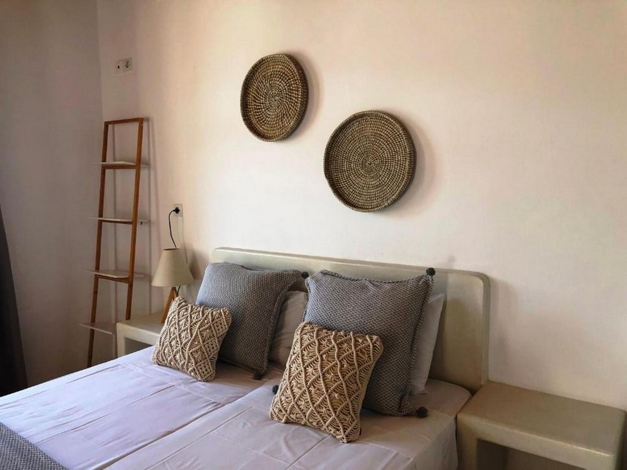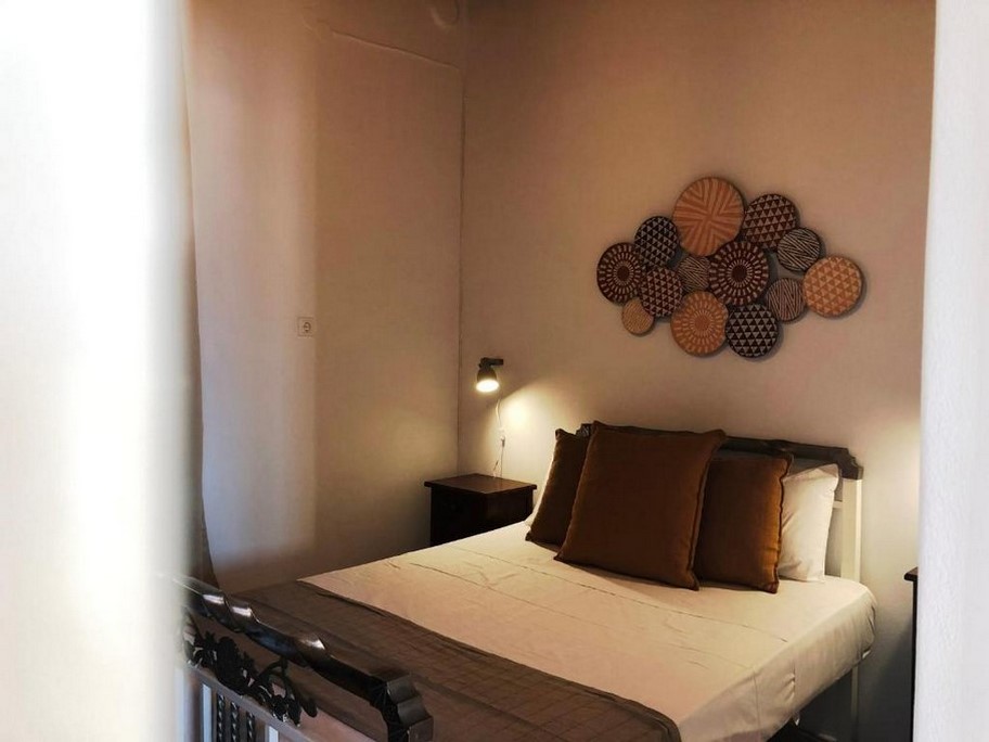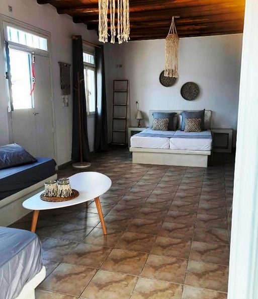 This is a one bedroom apartment with one master bedroom with double bed and an open space living room with double bed and two sofa-beds, mini kitchen and one bathroom.