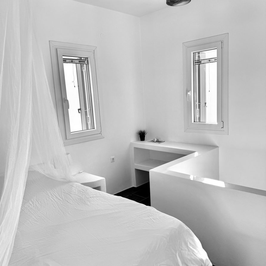 Sala is a one-bedroom apartment at Machi’s House, located in the center of Plaka, Milos. The apartment features a courtyard with view of the traditional village alleys and accommodates two guests.